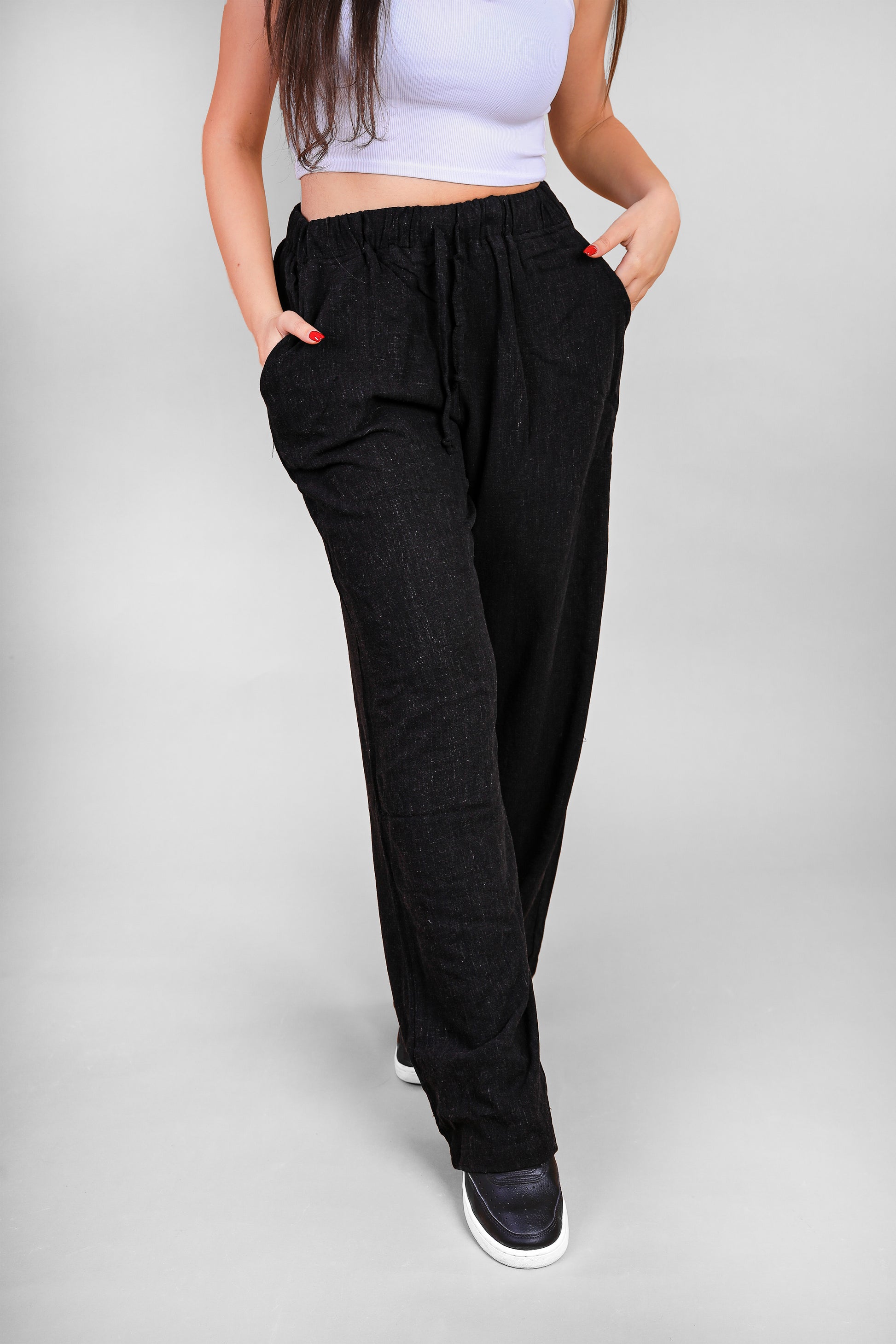 Crafted from breathable linen, these black pants offer a refined balance of comfort and sophistication. Their lightweight fabric ensures all-day wearability, while the tailored cut provides a sleek silhouette suitable for both casual and professional settings. Ideal for warm climates, these pants combine natural texture with versatile style, making them a staple for a polished wardrobe.